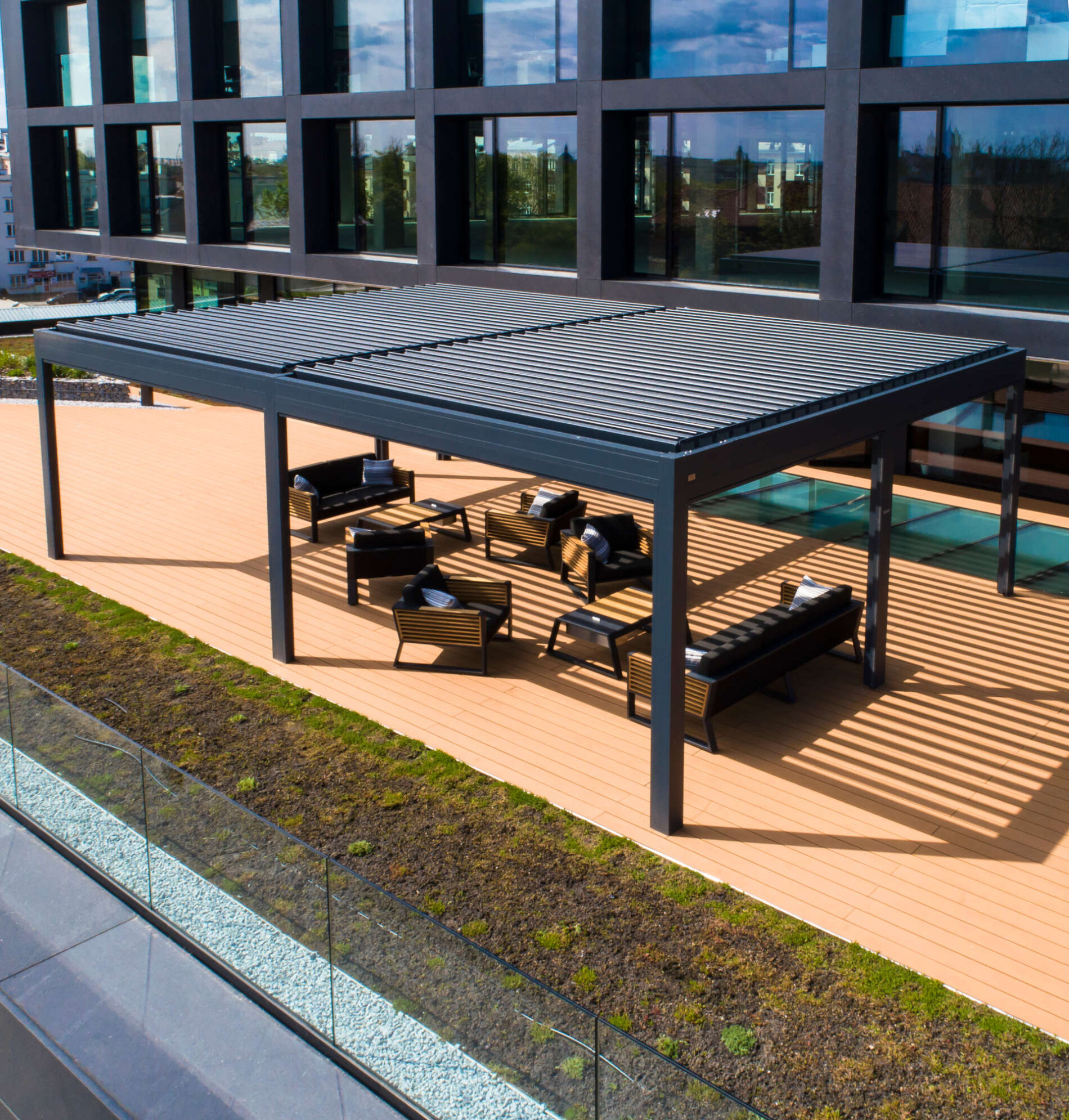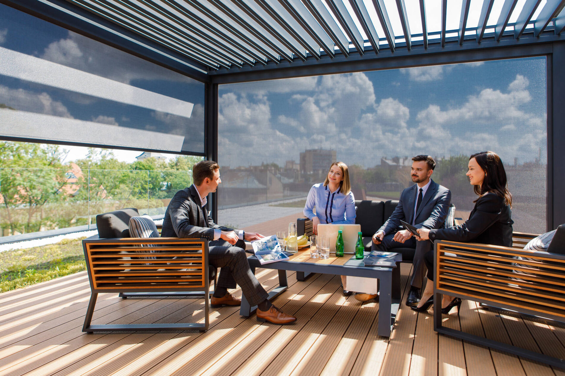 Bezpieczne szyby hartowane chronią od wiatru, zmiennej temperatury i deszczu. Umożliwia to wydłużenie sezonu na świeżym powietrzu do późnej jesieni.