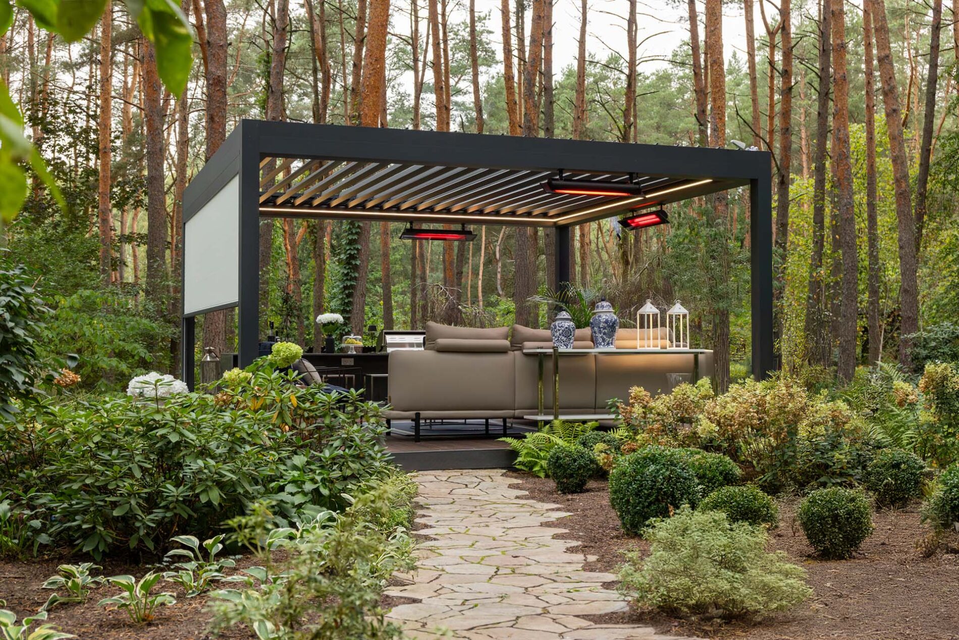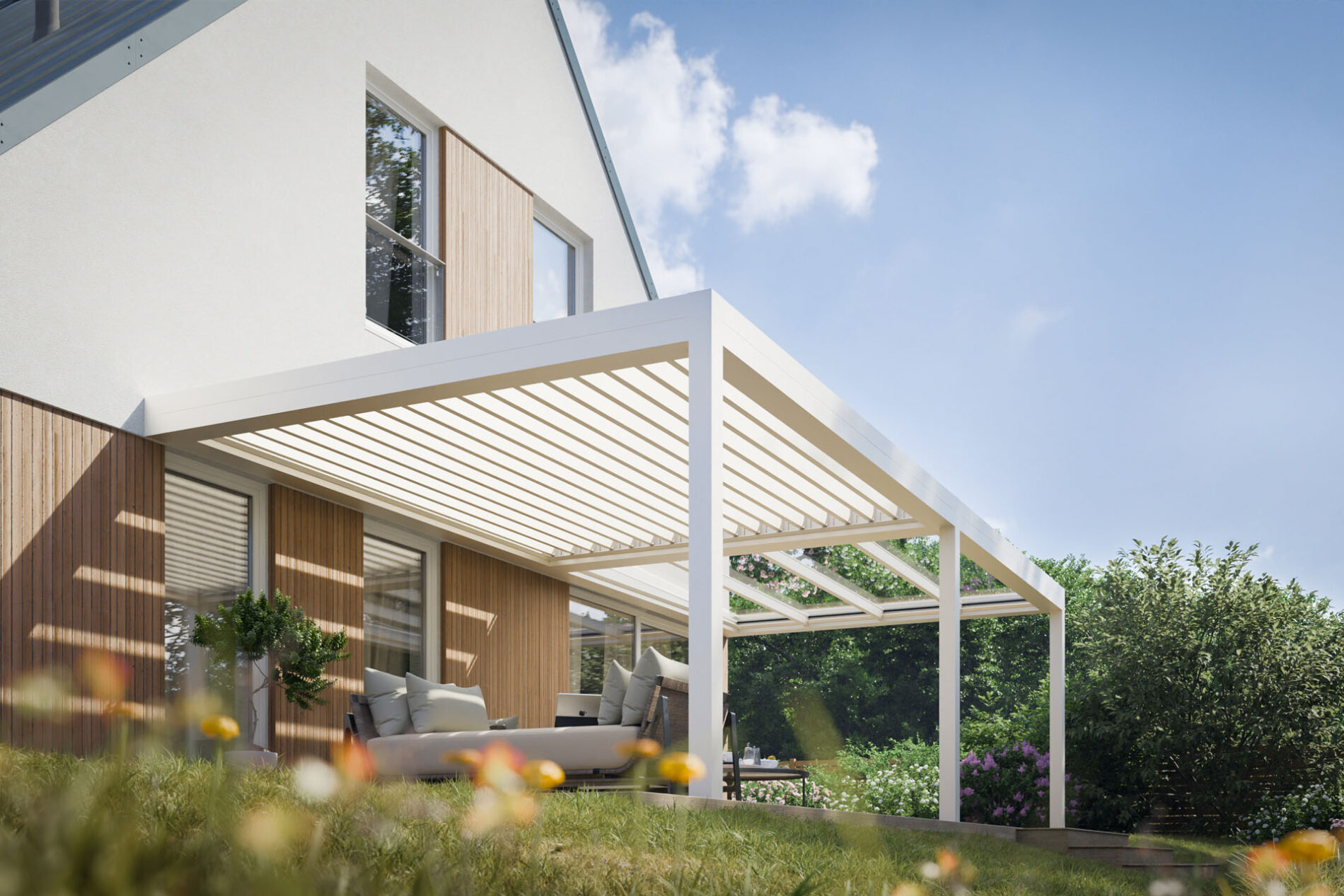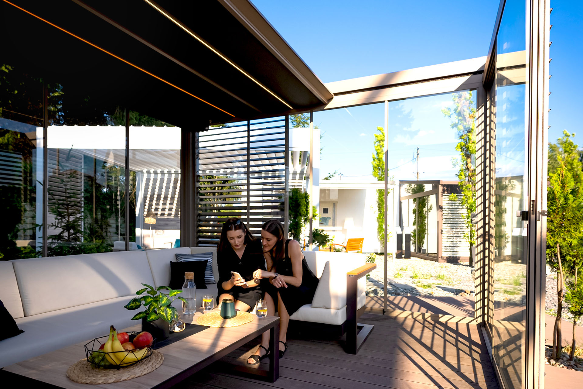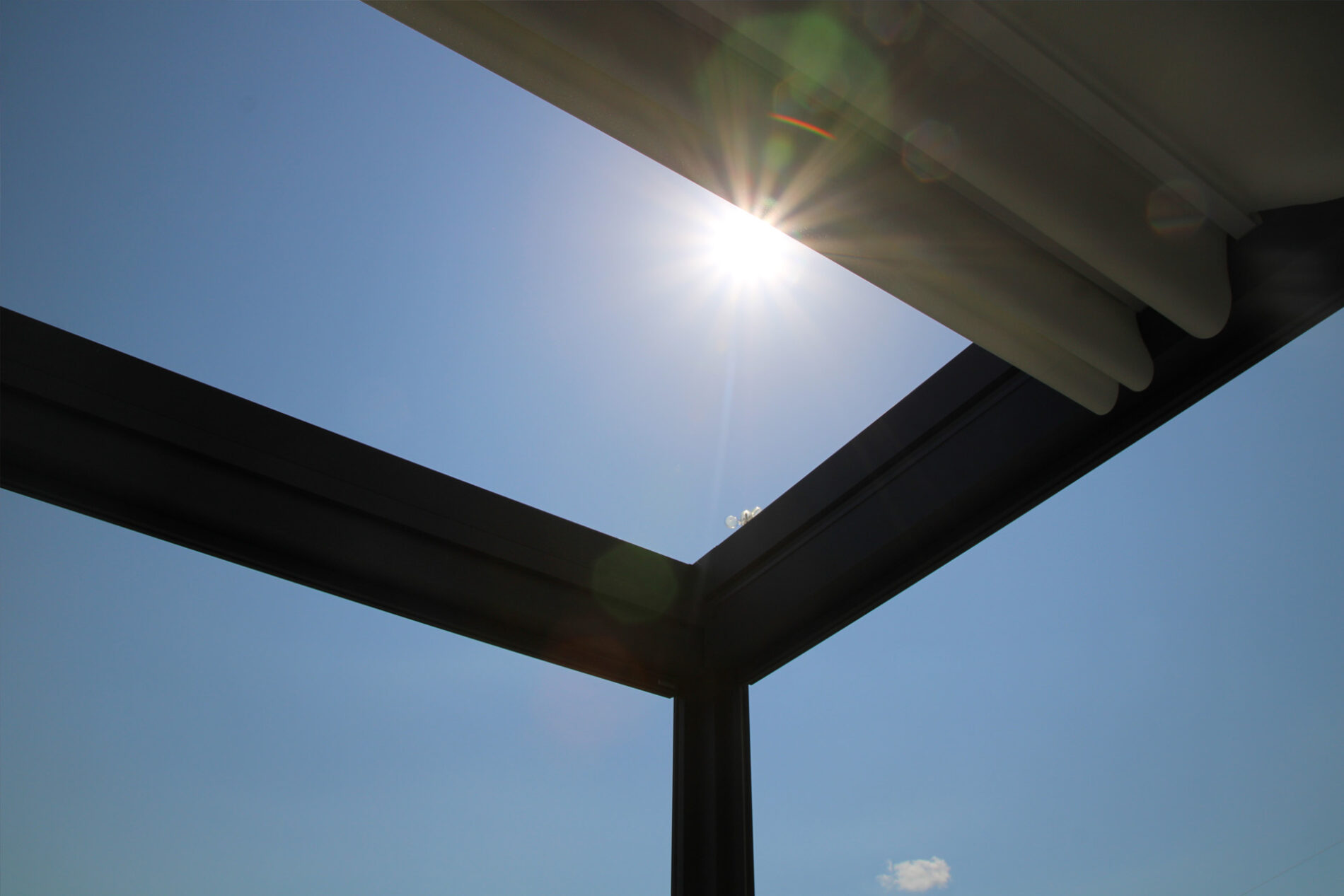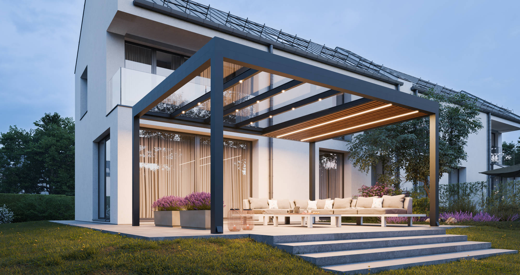 W Tarasoli szkło można zastosować w modelu Fix (zamiast poliwęglanu). Dobrze sprawdza się także w połączeniu z systemami lamelowymi, jak np. w modelu Technic New, gdzie szklany dach można zestawić z obrotowymi lamelami. To idealne rozwiązanie do strefy, którą chcesz doświetlić, np. przy wyjściu z salonu. Część lamelowa pozwala natomiast na pełną kontrolę nad światłem.