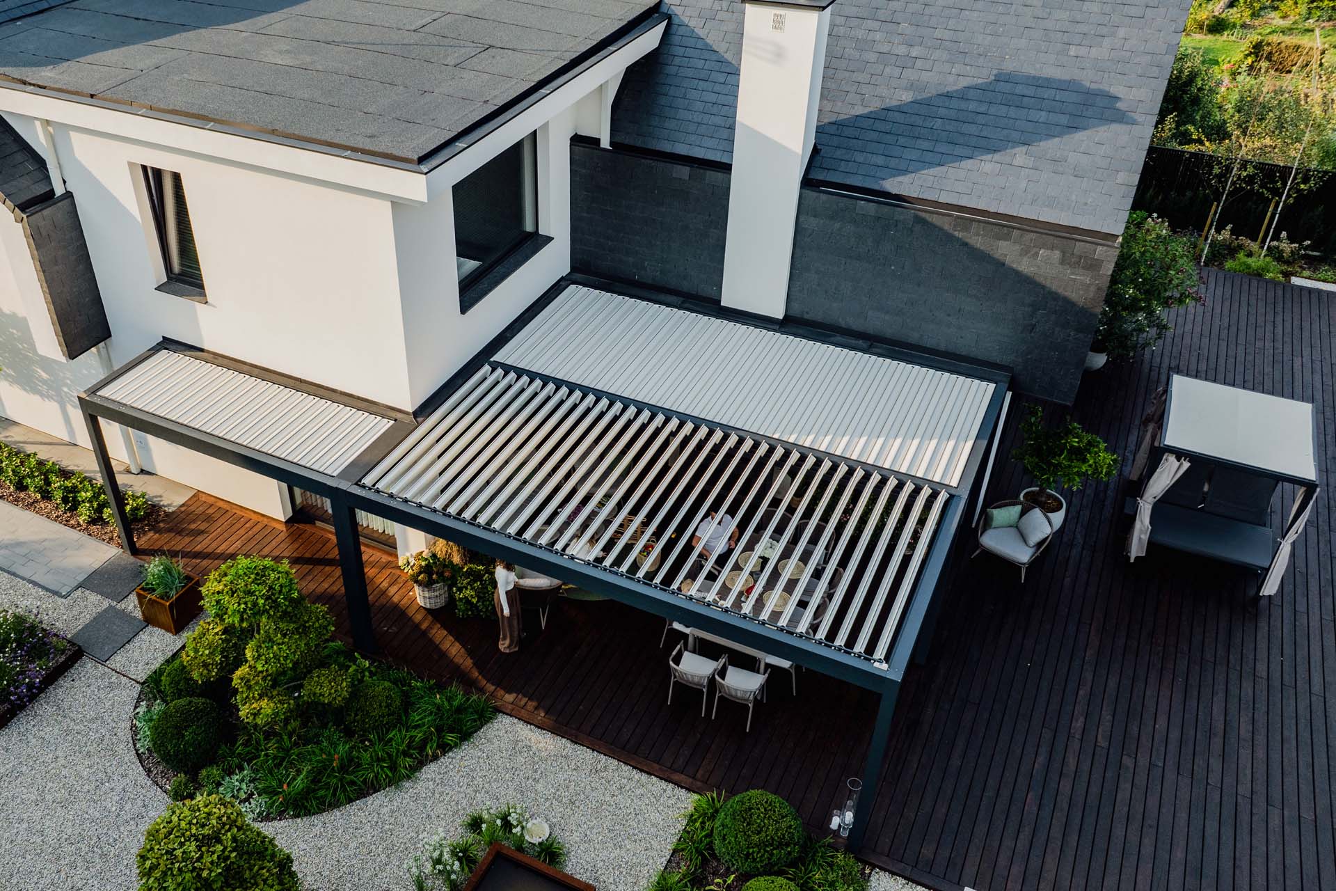 - Wschód to poranne słońce, a po południu przyjemny chłód. Z kolei zachód jest idealny dla tych, którzy lubią korzystać z tarasu po południu. W obu przypadkach doskonale sprawdzą się zadaszenia ruchome, które pozwalają na regulowanie dostępu światła. Dzięki nim możesz samodzielnie dostosować ilość promieni słonecznych.