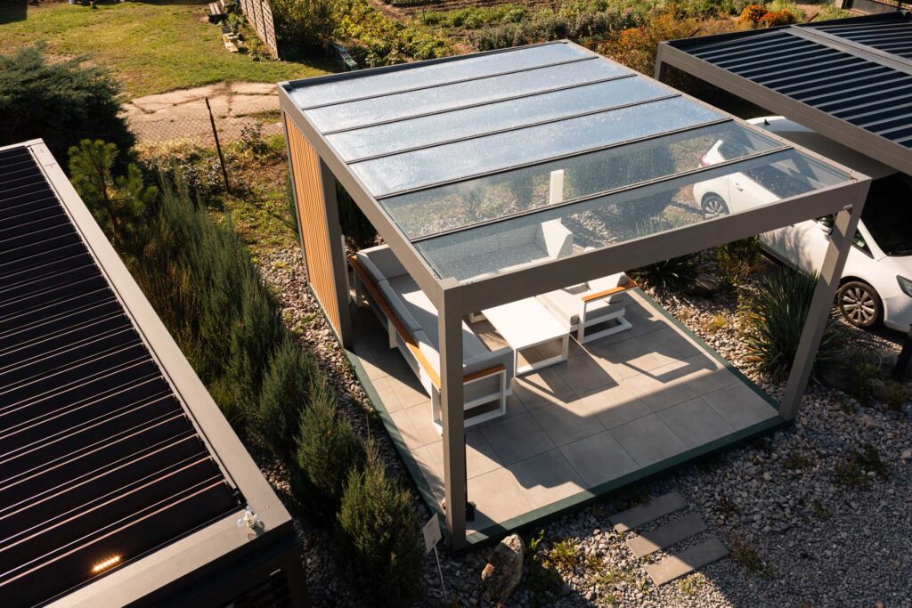 Zastosowanie takiego zadaszenia pomoże Ci stworzyć przestrzeń, która skutecznie chroni przed opadami, pozostawiając jednocześnie przyjemne wrażenie lekkości i otwartości.