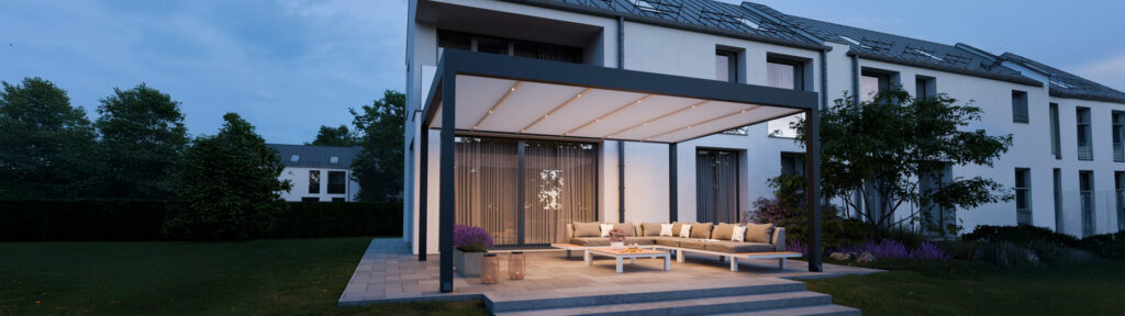 Nowoczesne zadaszenia tarasów wykonywane są także z materiałów, które można zwijać lub rozsuwać. Pozwala to na regulację ilości światła wpadającego na taras. Klienci bardzo często są zaskoczeni trwałością solidnej trójwarstwowej tkaniny Techprotect. Taki dach łatwo się czyści i jest odporny na warunki atmosferyczne.