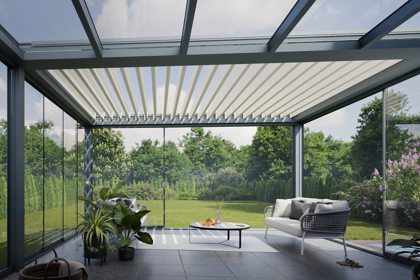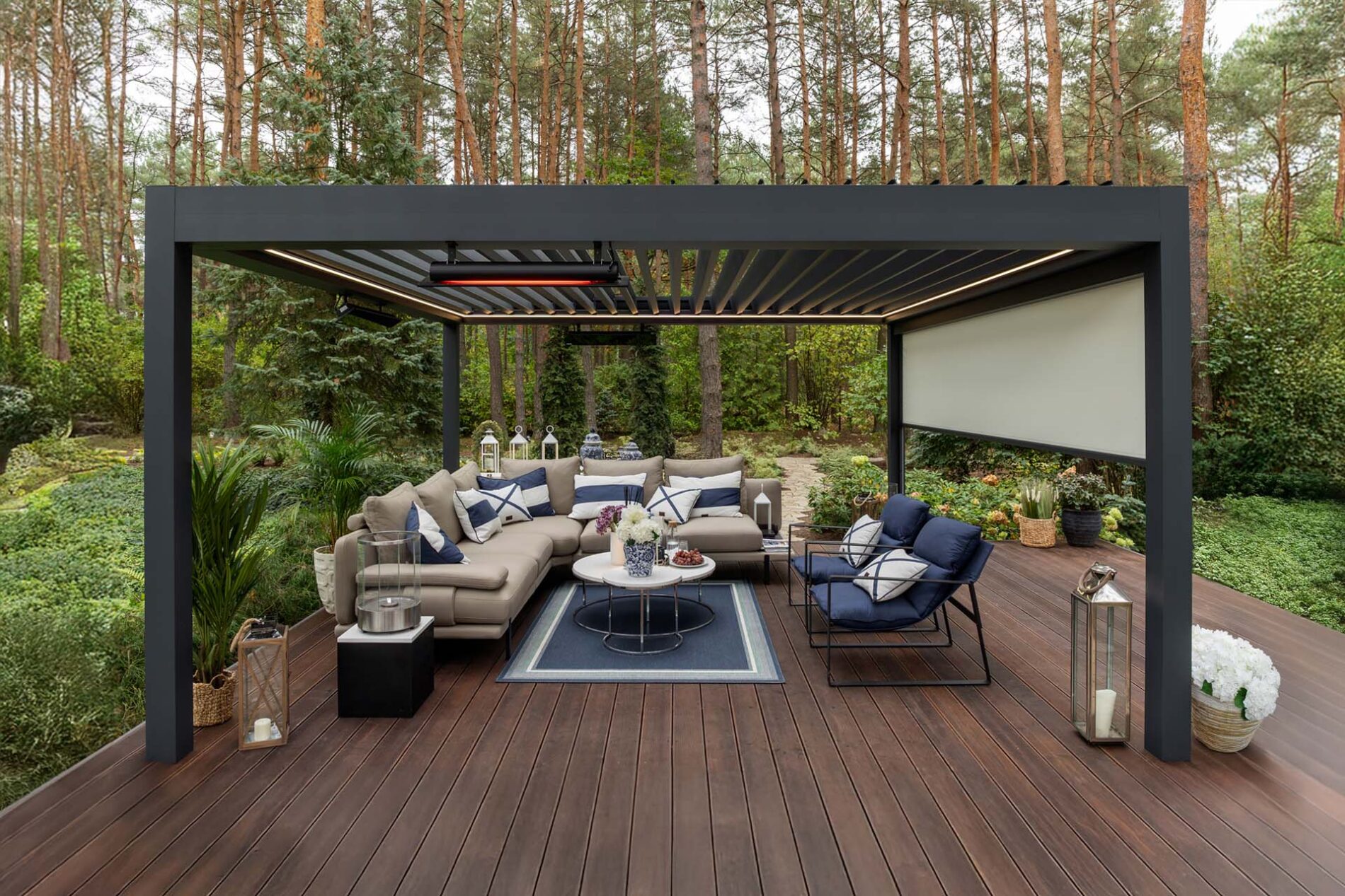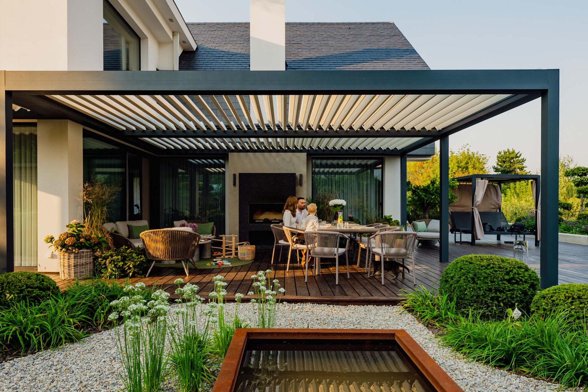 Jednym z najważniejszych trendów tego roku jest pełna kontrola nad światłem dziennym. I nie chodzi o to, by taras był albo jasny, albo zacieniony. Teraz inwestorzy chcą mieć możliwość stałego wyboru.