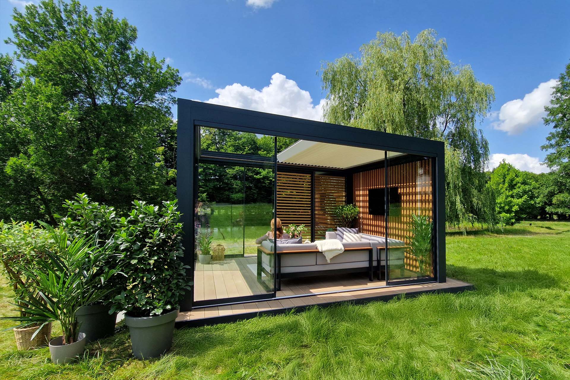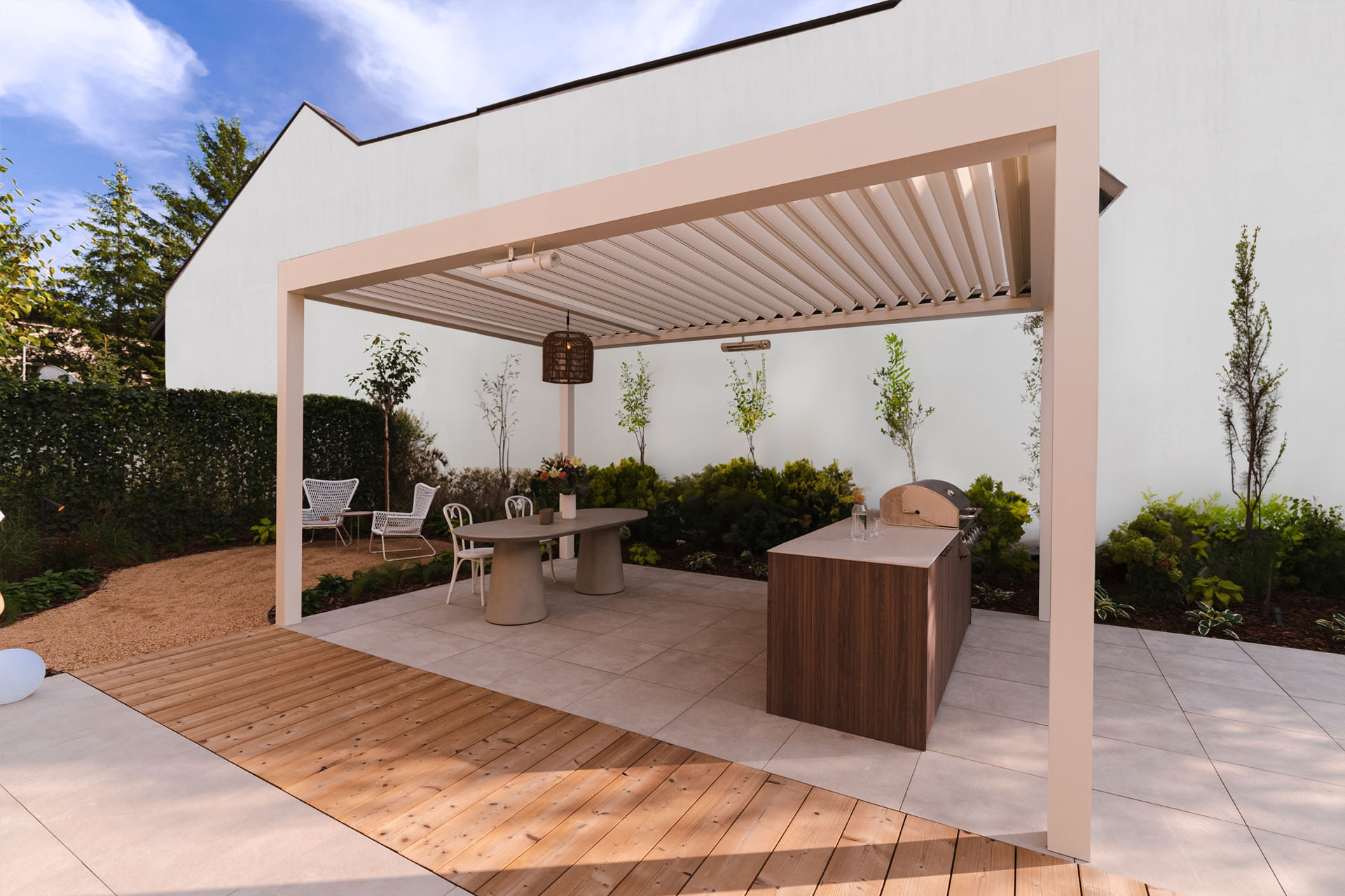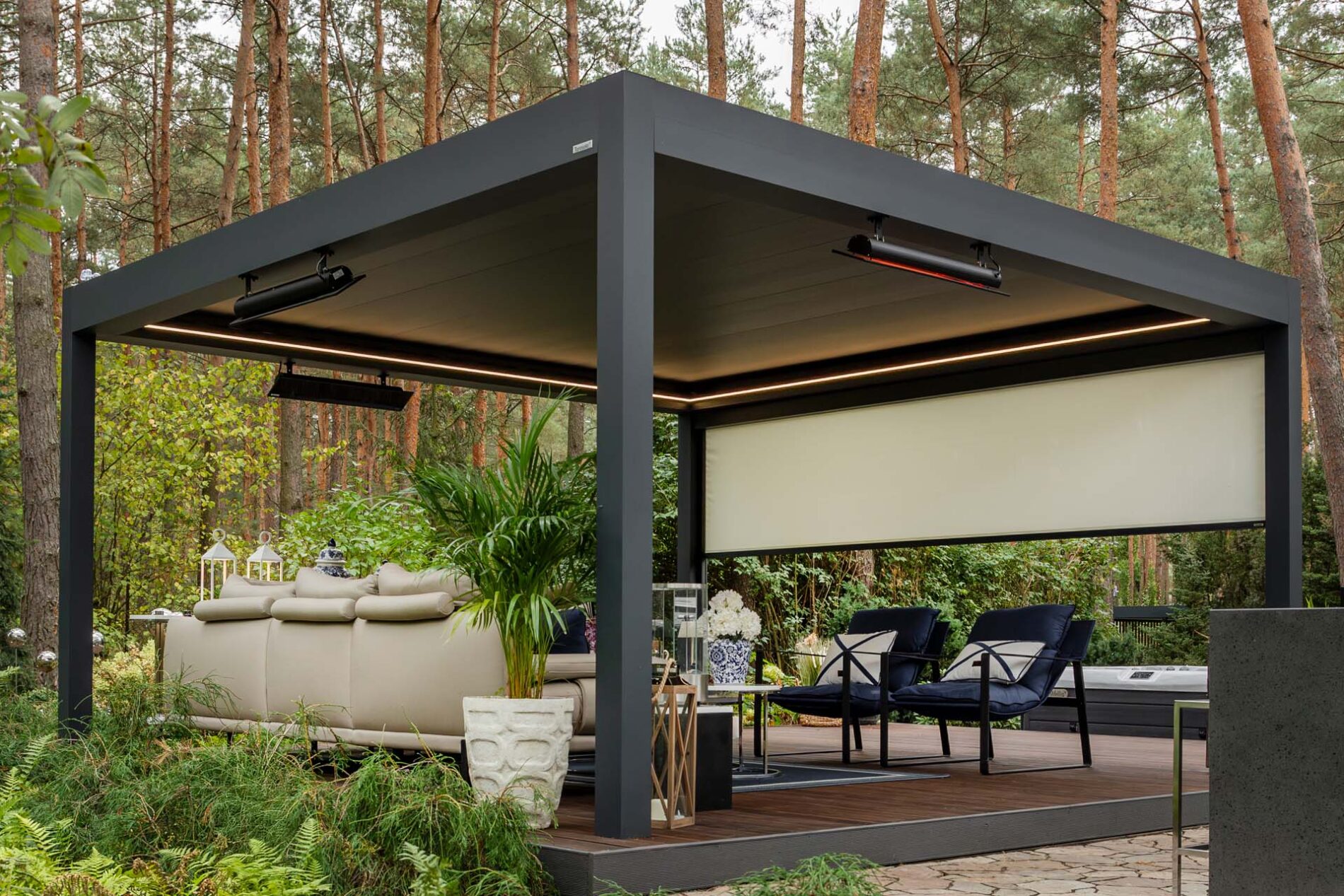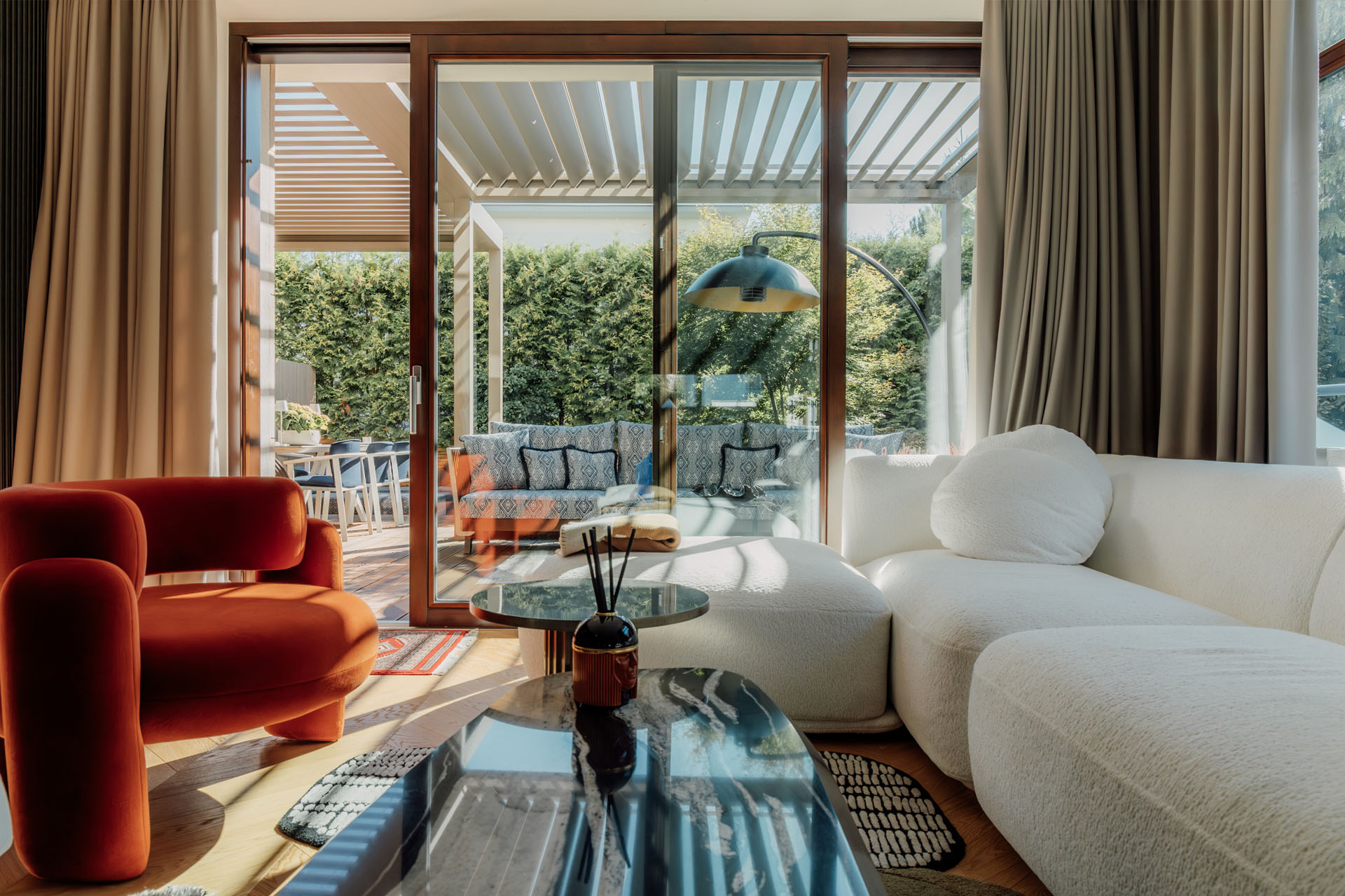 Jednym z najważniejszych trendów tego roku jest pełna kontrola nad światłem dziennym. I nie chodzi o to, by taras był albo jasny, albo zacieniony. Teraz inwestorzy chcą mieć możliwość stałego wyboru.