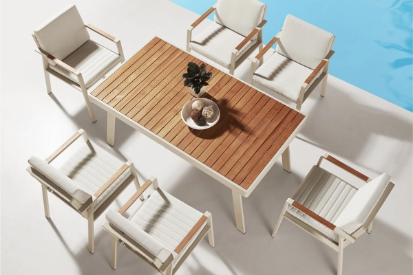 Kolekcja mebli jest wykonana z naturalnego surowego drewna tekowego i wymaga zabezpieczenia, aby zapobiegać naturalnemu procesowi jego szarzenia. Szczegółowe informacje dotyczące sugerowanych metod zabezpieczenia drewna w meblach Higold znajdują się tu: https://www.higoldeurope.eu/cleaner-kits/