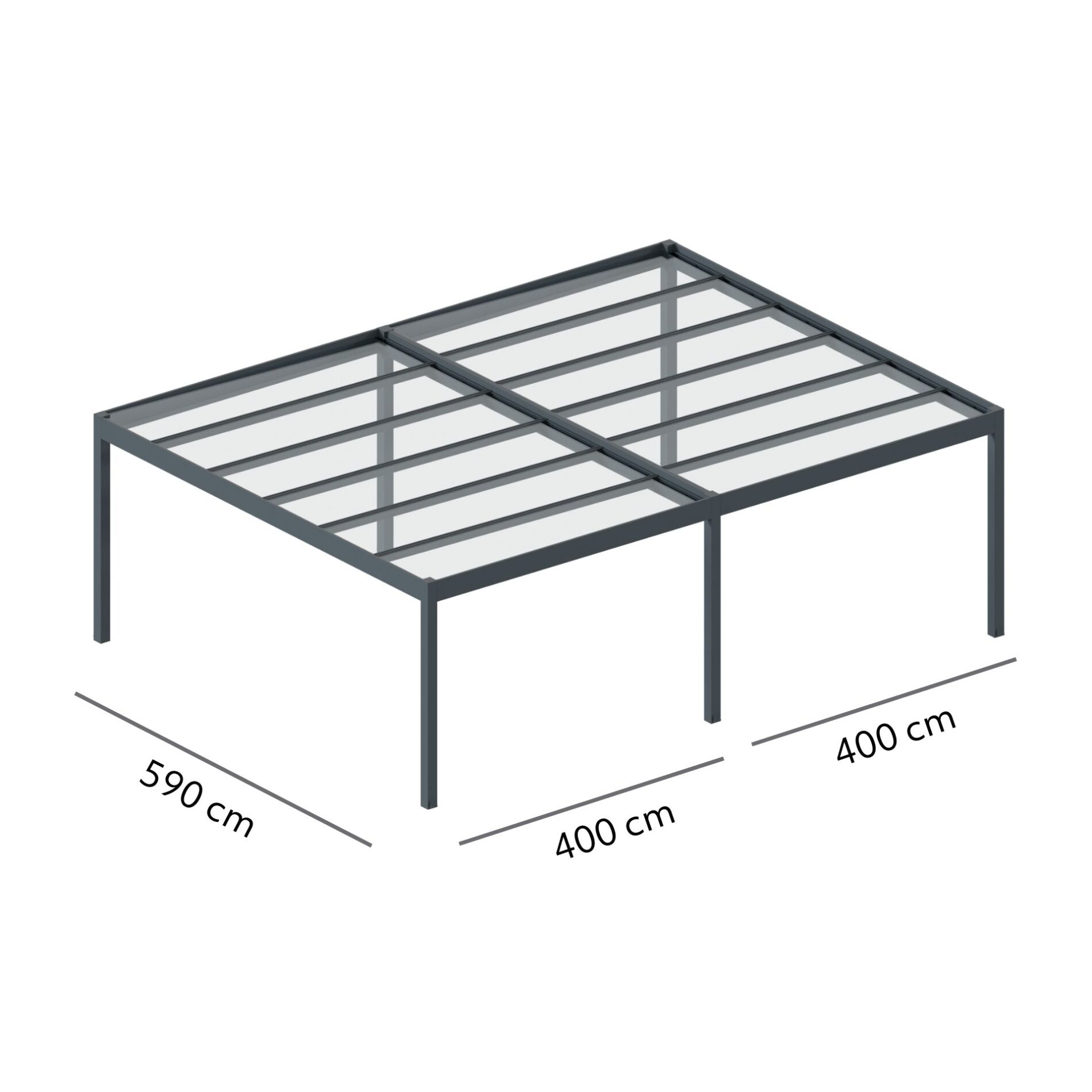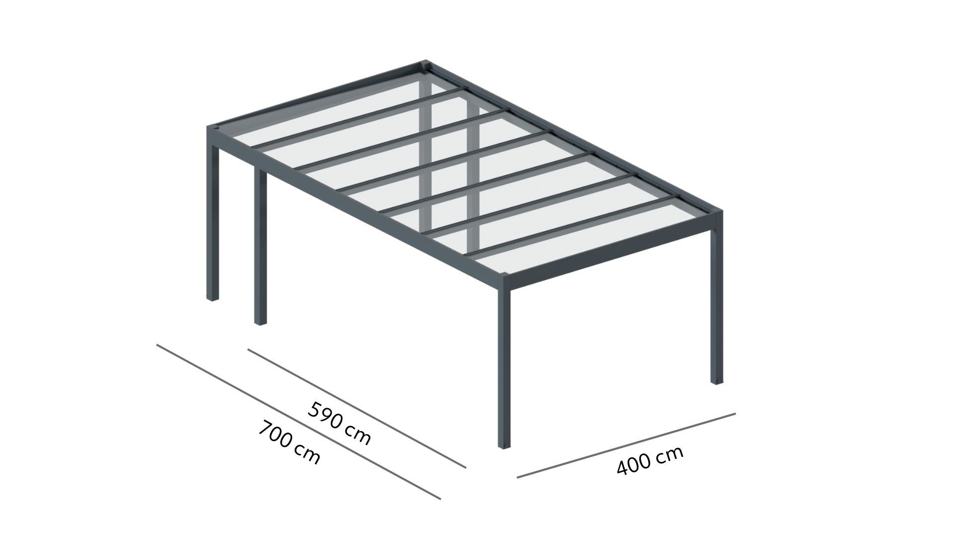 Zadaszenie montowane z jednej strony do ściany budynku, z drugiej na nogach podporowych. W przypadku zadaszenia jednomodułowego konstrukcja posiada 2 nogi.